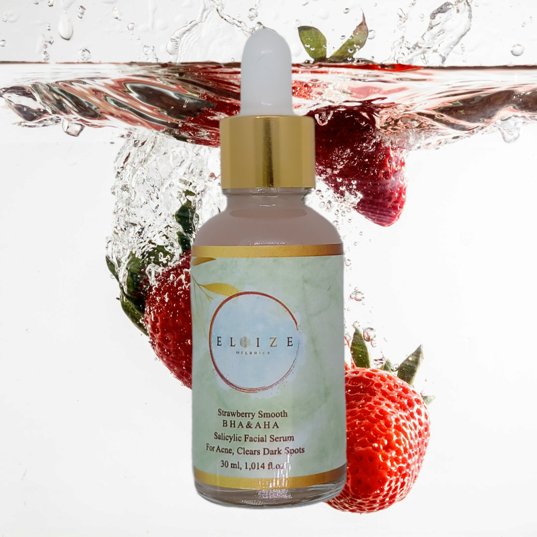 Strawberry Smooth BHA + AHA Salicylic Serum is a hydrating and soothing serum that works to heal blemishes without the chemical smell and over-drying formulas found in traditional acne healing products.giving skin an incredible glow